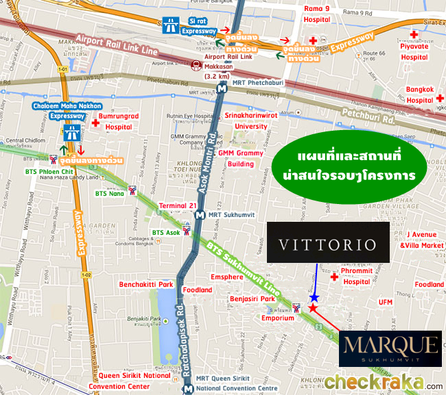 แผนที่โครงการ Vittorio และ MARQUE Sukhumvit และสถานที่ใกล้เคียง