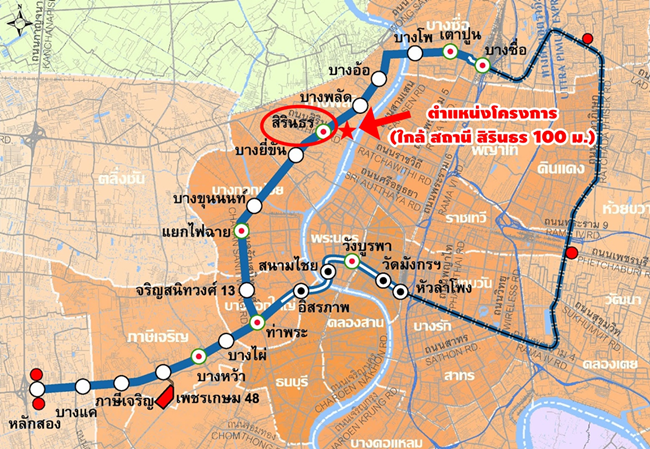พอเลี้ยวซ้ายที่แยกบางพลัด ก็จะถึงรถไฟฟ้าสายสีน้ำเงิน สถานีสิรินธร แล้วค่ะ