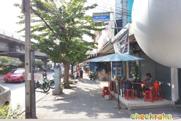 เดี๋ยวเรามาลองดูบรรยากาศรอบๆ โครงการกันดีกว่านะคะ ออกมาจากโครงการก็จะเจอกับร้านอาหารริมทางก่อนเลย