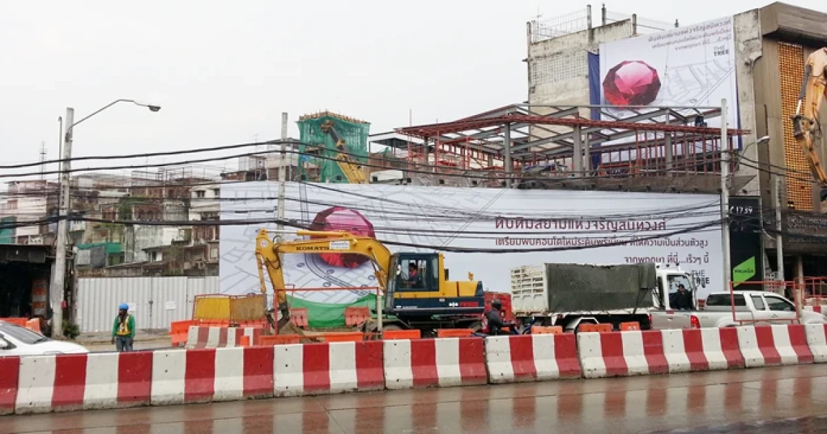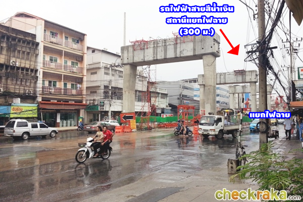 เดินต่อไปเรื่อยๆ ก็จะเห็นแนวรถไฟฟ้าสายสีน้ำเงินที่กำลังก่อสร้างค่ะ