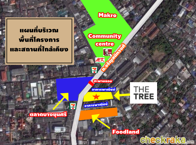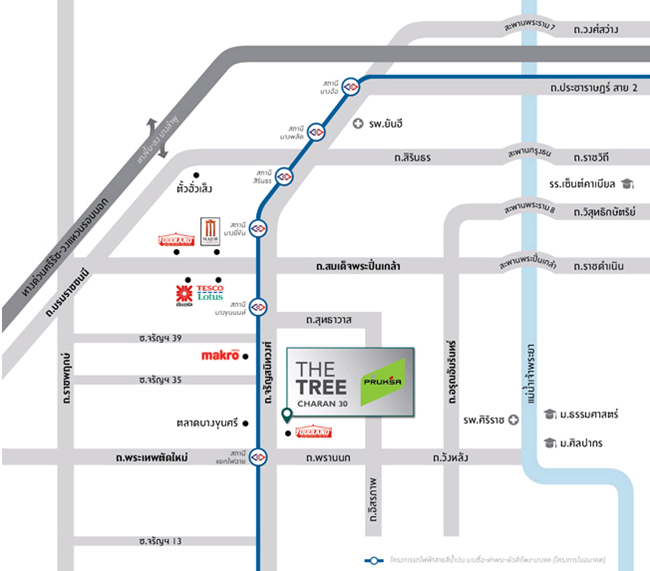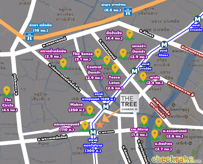 แผนที่โครงการ The Tree Charan 30 และระยะห่างจากสถานที่ใกล้เคียง