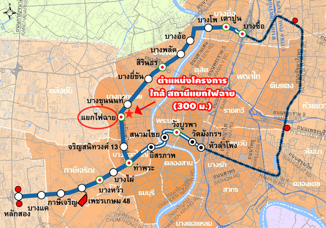 สถานีที่ใกล้กับโครงการที่สุดก็คือ สถานีแยกไฟฉาย อยู่ใกล้ๆ กับแยกไฟฉายนั่นเอง ห่างจากโครงการประมาณ 300 ม. ค่ะ