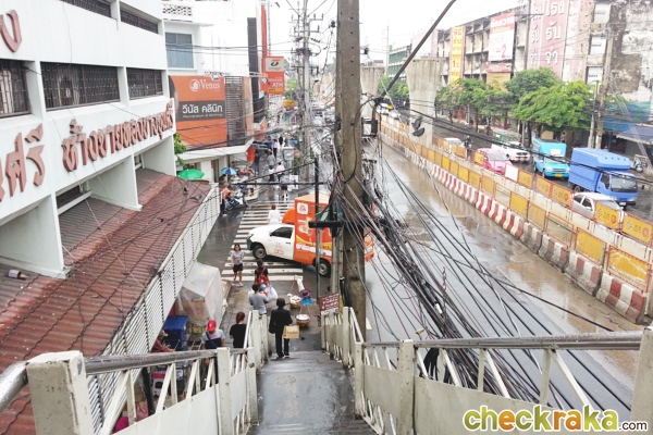 ถ้าออกจากโครงการแล้วเดินมาทางขวามือ ก็จะเจอกับสะพานลอยคนข้าม เดี๋ยวเราลองข้ามไปดูฝั่งตรงข้ามกันดีกว่านะคะ