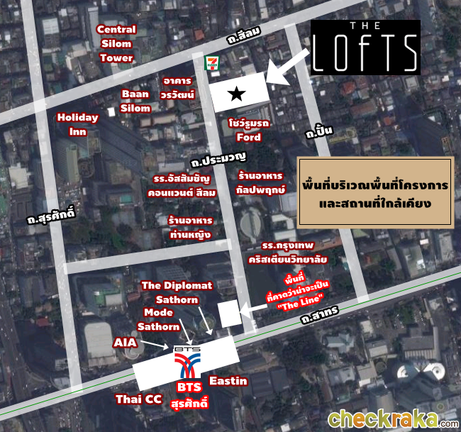 พรีวิวทำเลคอนโด "The Lofts Silom" คอนโดใหม่ สีลม ของ Raimon Land ใกล้ BTS สุรศักดิ์ 400 ม.