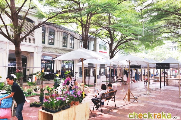 บรรยากาศภายใน Baan Silom ร่มรื่น ได้อารมณ์เหมือนอยู่ในสวน ล้อมรอบไปด้วยร้านกาแฟ และร้านอาหาร