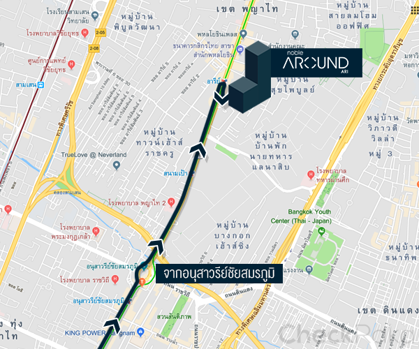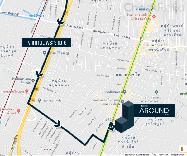 ประมาณ 1.8 กิโลเมตร จากนั้นกลับรถก่อนถึง BTS อารีย์ มุ่งหน้าต่ออีก 50 เมตร ก็ถึงโครงการ