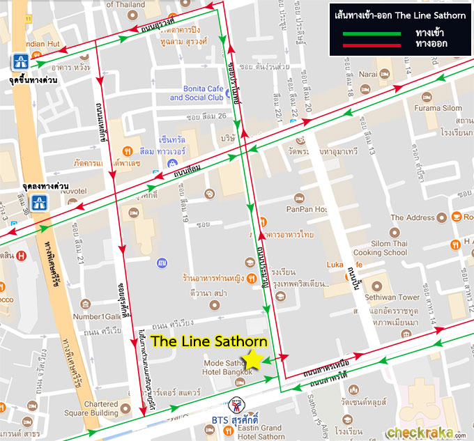 (เลี้ยวจากสาทรได้ตรงแยกนี้ จะไปได้ทั้ง The Line Sathorn และ The Lofts Silom)