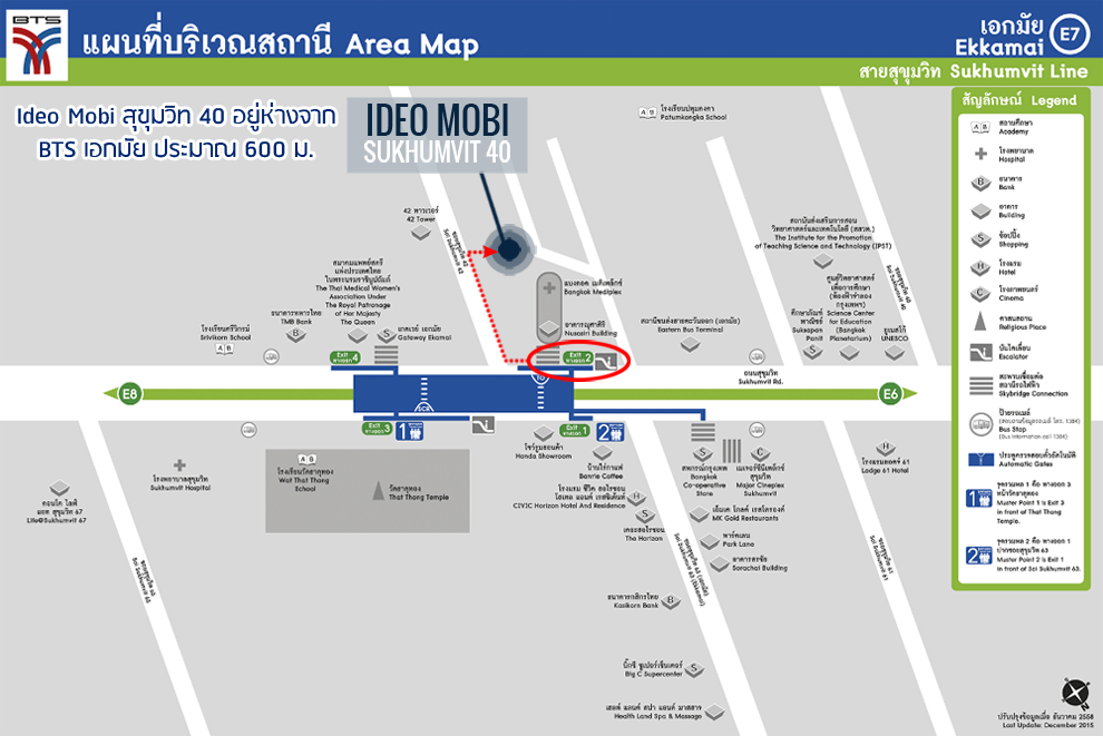 สำหรับสถานีรถไฟฟ้าที่ใกล้ที่คือสถานีเอกมัย ออกทางออกที่ 2 ลงมาจะเป็นปากซอยสุขุมวิท 42 เดินตรงเข้าไปภายในซอยประมาณ 600 เมตร ก็จะถึงตัวโครงการ (คลิกเพื่อดูภาพขนาดใหญ่)