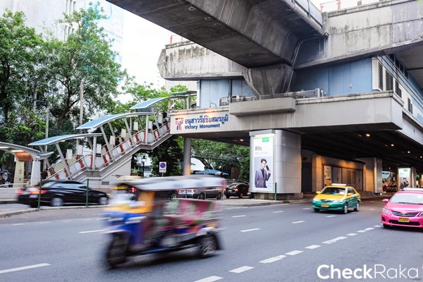 บรรยากาศ BTS สถานีอนุสาวรีย์ชัยสมรภูมิตอนกลางวัน ถนนพญาไทเส้นนี้มีรถหนาแน่นในช่วงเช้ากับช่วงเย็น