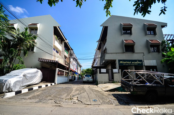 เดินเข้ามาไม่ไกลจะเจอกับแนวทาวน์เฮ้าส์สูง 3 ชั้นอยู่ทางขวามือ ตรงจุดนี้มีเปิดเป็นร้านนวดไทยด้วย