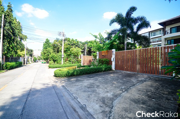 ฝั่งตรงข้ามโครงการเป็นบ้านพักอาศัย 2 ชั้นสไตล์บ้านทรงไทย