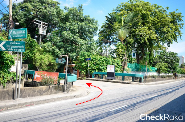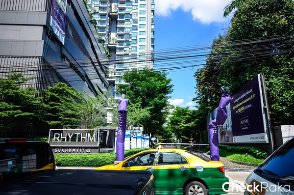 เดินเข้ามาภายในซอยไม่ไกลจะเห็นโครงการ RHYTHM สุขุมวิท 42 เป็นคอนโด High rise อยู่ทางซ้ายมือ