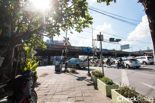 จากโครงการเดินตรงขึ้นมาประมาณ 50 เมตรจะเป็นสี่แยกจุดตัดของถนนพระราม 4 กับถนนเชื้อเพลิง