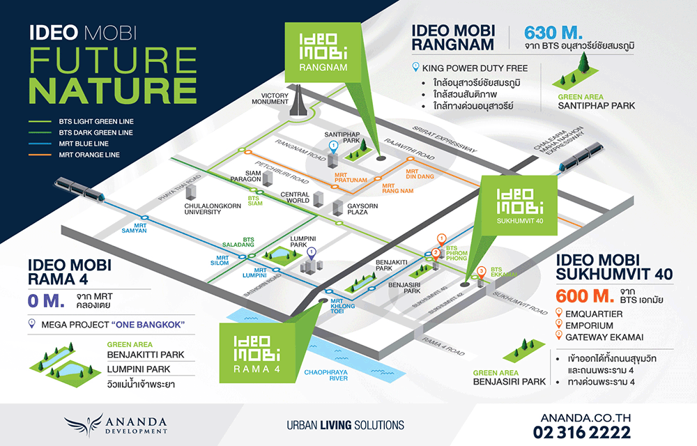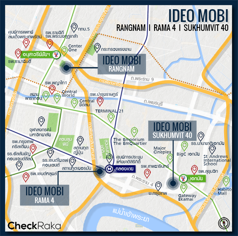 สำหรับพรีวิวทำเลในรอบนี้เราจะพาไปชมคอนโดมิเนียม Ideo Mobi 3 โครงการใหม่ล่าสุดจากค่าย อนันดา ดีเวลลอปเม้นท์ ที่เปิดตัวไปเมื่อเร็วๆ นี้ โดยทั้ง 3 โครงการตั้งอยู่บน 3 ทำเลศักยภาพใจกลางกรุงเทพฯ Ideo Mobi รางน้ำ, Ideo Mobi พระราม 4 และ Ideo Mobi สุขุมวิท 40 ต้องบอกว่าแต่ละทำเลไม่ธรรมดาเลย ใกล้รถไฟฟ้า MRT และ BTS ทั้งแบบติดบันไดรถไฟฟ้าใต้ดินหรือในระยะเดินได้แบบออกกำลังกายไปในตัว 600 เมตร ซึ่งเป็นระยะที่สามารถเดินได้ ดังนั้นวันนี้ CheckRaka.com จะเดินทางด้วยรถไฟฟ้าเพื่อลงพื้นที่ไปเก็บภาพบรรยากาศรอบๆ ของทั้ง 3 โครงการมาฝากกันค่ะ ตามไปดูสิว่าแต่ละทำเลจะมีความน่าสนใจขนาดไหน ไปชมกันค่ะ
