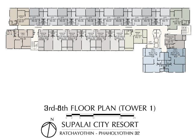 - Family Suite(ex) 2 ห้องนอนขนาด 66 ตร.ม. (คลิกเพื่อดูแปลนห้อง)
