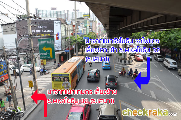 เมื่อเข้าซอยมาแล้วให้วิ่งไปตามทางเรื่อยๆ ซอยพหลโยธิน 32 นี้มี 4 เลน (เข้า 2 ออก 2)