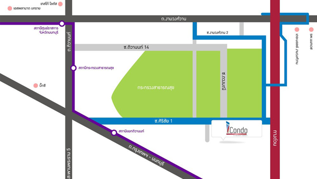 ส่วนโครงการ iCondo งามวงศ์วาน 1 จะอยู่ทางด้านซ้ายมือ (ถ้าตรงต่อไปเลี้ยวขวาจะเจอ iCondo งามวงศ์วาน 2)
