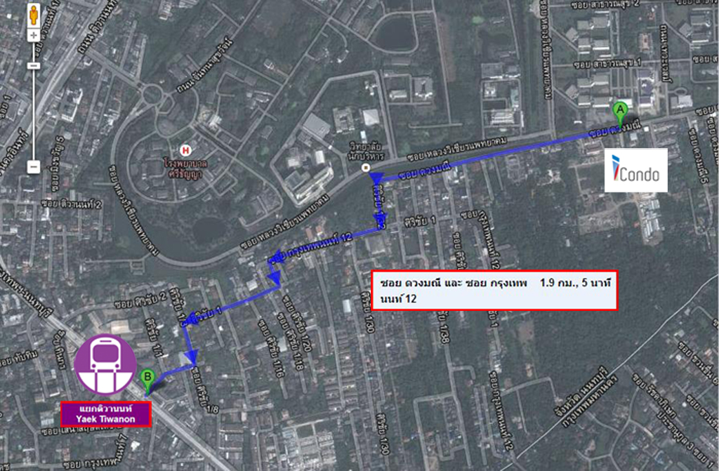 สถานีแยกติวานนท์ประมาณ 1.9 กิโลเมตรใช้เวลาเดินทางแค่ 5 นาที