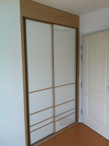 สำหรับ 1 ห้องนอนทุกยูนิตจะมีตู้เสื้อผ้าแบบบิวท์อินมาให้หน้าตาแบบในรูปเลยครับ