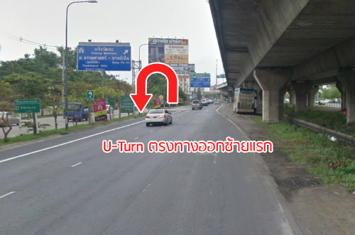 ลงทางด่วนมาให้ U-Turn ตรงทางออกซ้ายแรก (ระวังขับเลยนะครับ ให้สังเกตป้าย U-Turn ไว้)
