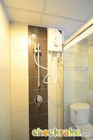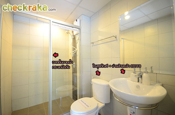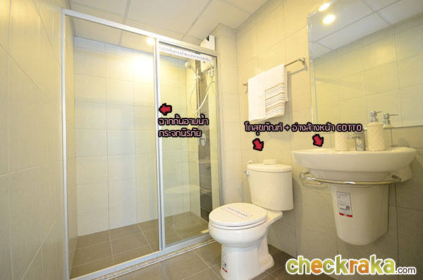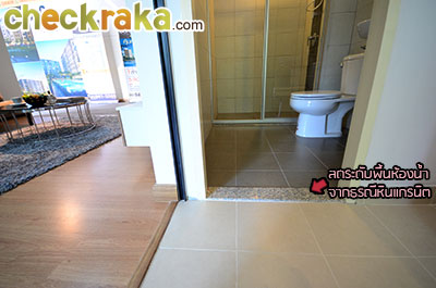 ส่วนภายในห้องน้ำใช้วัสดุสเปคเดียวกันกับห้องแบบสตูดิโอ