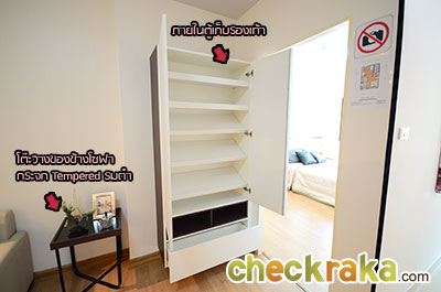 เปิดลิ้นชักใส่ของพร้อมตู้วางรองเท้าตรงซ้ายมือ