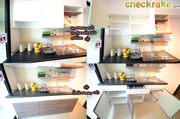 เปิดตู้ลอย และลิ้นชักเคาน์เตอร์ดูพื้นที่เก็บของกันค่ะ
