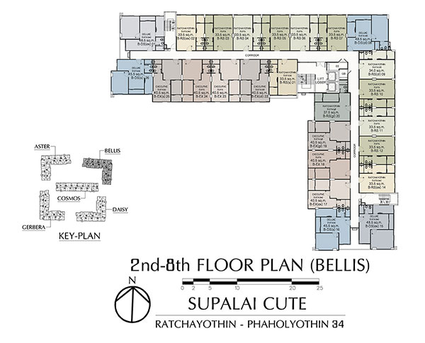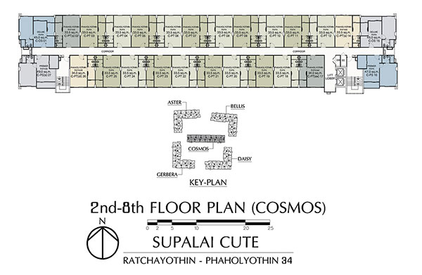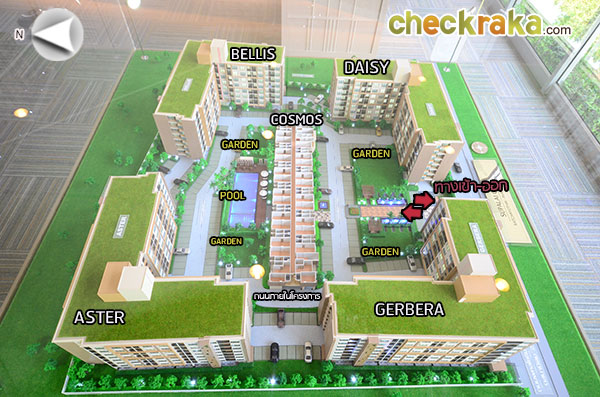 - โดยรวมดีไซน์ของตัวอาคารเป็นแบบเรียบง่ายตามสไตล์คอนโดศุภาลัย แต่โครงการนี้จะมีความพิเศษหน่อยตรงที่มีการผสมผสานโทนสีน้ำตาลแนว Beige และตกแต่งบริเวณภายใน อย่างเช่น Lobby ให้เป็นไปตามโทนสีของชื่อดอกไม้ซึ่งเป็นชื่อของตึกนั้นๆ เช่น ดอก Aster (ออกโทนม่วง), Bellis (ออกโทนแดงชมพูขาว), Cosmos (ออกโทนแดงม่วงส้มขาว), Daisy (ออกโทนขาว) และ Gerbera (ออกโทนแดง) ส่วนการจัดวางอาคารทั้ง 4 ตึก และวางถนนภายในให้ตั้งอยู่ล้อมรอบตึก Cosmos ซึ่งเป็นที่ตั้งของสระว่ายน้ำ และพื้นที่ส่วนกลาง มีส่วนดีตรงที่ให้ความรู้สึกและอารมณ์เหมือนอยู่ภายในรีสอร์ทเล็กๆ ที่ร่มรื่นสามารถเดินไปมาระหว่างตึก, ที่จอดรถ และ Facilities ต่างๆ ได้สะดวกถึงกันหมด ส่วนเรื่องวิวรอบโครงการ อาจจะไม่ใช่จุดขายเท่าไหร่สำหรับโครงการคอนโดแบบ Low Rise โครงการนี้ เพราะรอบโครงการมีทั้งตึกสูง และตึก Low Rise กระจายตัวอยู่หลายด้าน เช่น คอนโดศุภาลัย ปาร์ค (สูง 26 ชั้น), เปรมสิริ บูทิค พาร์ค (สูง 9 ชั้น 5 อาคาร และสูง 22 ชั้น 1 อาคาร) และ You Condo (สูง 8 ชั้น) นอกจากนี้ เราทราบมาว่ายังมีที่ดินแปลงติดกันบางส่วนของศุภาลัยที่ยังรอการพัฒนาอยู่ด้วยตรงส่วนที่เป็นโรงงานเก่า ดังนั้นใครที่สนใจเรื่องทิศทางลม แสงแดด หรือวิวของแต่ละห้องคงต้องพิจารณาถึงปัจจัยเหล่านี้ประกอบในการตัดสินใจ แต่ยังไงซะหากคิดในด้านดีการที่มีอาคารหลายๆ แห่งในย่านนี้ก็จะช่วยทำให้พื้นที่แถวนี้กลายเป็นย่านที่อุดมสมบูรณ์ หารถเดินทางไปไหนมาไหนได้สะดวก และไม่เปลี่ยวค่ะ
