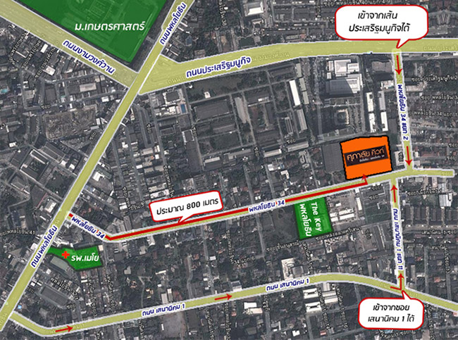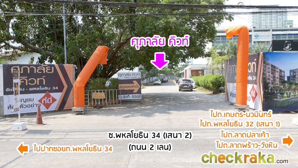 รูปแผนที่ ศุภาลัย คิวท์ รัชโยธิน พหลโยธิน 34 แสดงเส้นทางเข้าออก