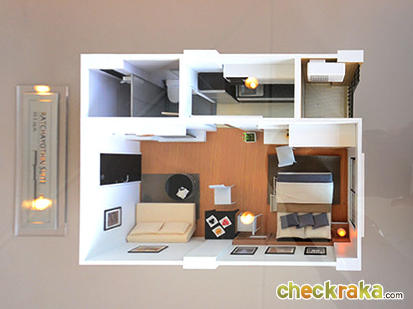 ห้องตัวอย่าง 1) ห้องสตูดิโอ แบบ Ratchayothin Suite ขนาด 33.5 ตร.ม.