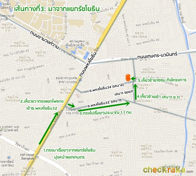 - ที่ตั้งโครงการ: ซอยพหลโยธิน 34 (เสนานิคม 2) แขวงเสนานิคม เขตจตุจักร กรุงเทพมหานคร