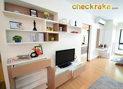 ส่วน Built in ตู้ลอยและโต๊ะวางทีวีก็จัดวางได้แบบลงตัว