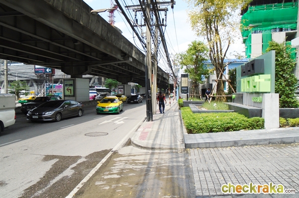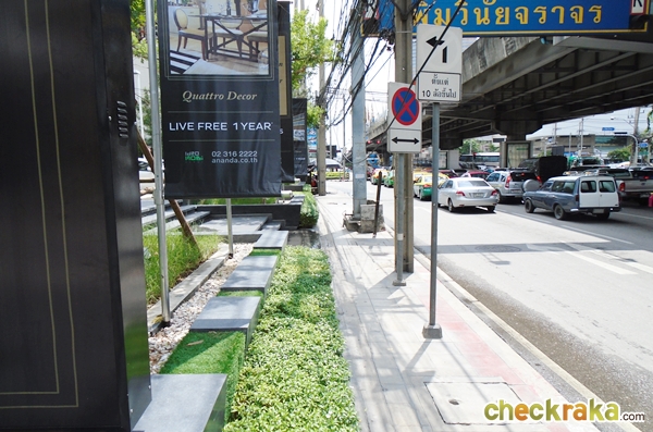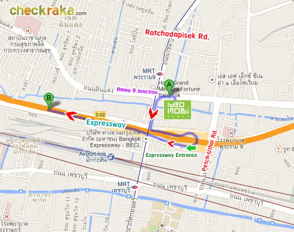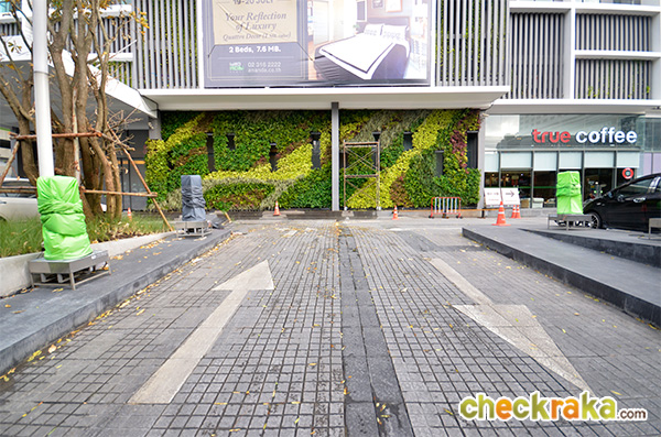 นอกจากนั้นยังมี Airport Rail Link สถานีมักกะสัน (อยู่ห่างจากโครงการประมาณ 700 เมตร) สามารถเดิน หรือนั่งวินมอเตอร์ไซค์ที่อยู่หน้าโครงการไปได้ค่ะ ส่วนป้ายรถประจำทางที่ใหญ่ๆ ก็จะมีอยู่ที่หน้า Central พระราม 9 และหน้าฟอร์จูน ซึ่งจะมีรถตู้มาจอดรับคนอยู่หลายสายเหมือนกันค่ะ เดี๋ยวลองมาดูภาพตัวอย่างการเดินจากโครงการไปสถานีรถไฟฟ้า MRT สถานีพระราม 9 กันนะคะ (In addition, the condominium is approximately 700 meters away from Makkasan Station (Airport Rail Link) which can be reachable by foot or by motorcycle taxi. There is a motorcycle taxi pick-up line right in front of the condominium. There is one large bus stop in front of Central Rama 9 and Fortune Building where shuttle vans, in addition to public buses, normally make a stop to pick up passengers. The photos below show the walking route from the condominium to Rama 9 MRT Station)