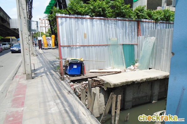 ถัดมาก็จะเป็นซอยเล็กๆ ซึ่งเป็นทางเข้าของ Aspire Rama 9 คอนโด 23-25 ชั้นซึ่งการก่อสร้างโครงสร้างเสร็จหมดแล้ว ส่วนด้านหน้ามองไปไกลๆ ก็จะมี Sales Gallery ของ Rhythm Asoke II (Next is the entrance street leading to Aspire Rama 9 whose height is 23-25 floors. Its structural construction is basically finished. Looking further we will see the Sales Gallery of another new condominium, i.e. Rhythm Asoke II)