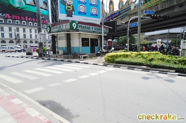 พอถึงแยกพระราม 9 ก็จะมีทางม้าลายให้ข้ามไปทางขวา (Once we reach Rama 9 junction,