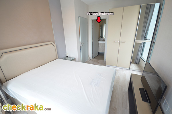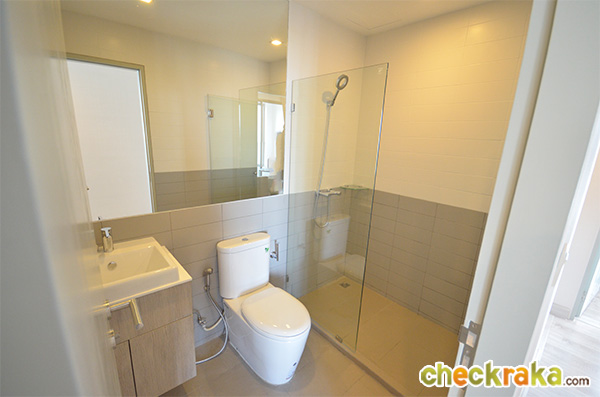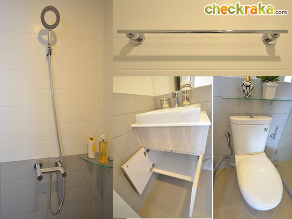 ภายในห้องน้ำส่วนตัว ขนาด การตกแต่ง รวมไปถึงสุขภัณฑ์ใช้ของแบบเดียวกันกับห้องน้ำด้านนอกทุกอย่างค่ะ (The size, space and sanitary ware inside this private bathroom are similar and comparable to those of the living area bathroom)
