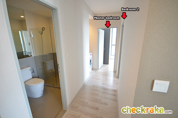 ออกมาจากห้องนอนเล็ก เจอช่องวางเครื่องเสื้อผ้า ส่วนขวามือคือห้องนอน Master Bedroom