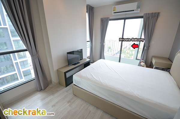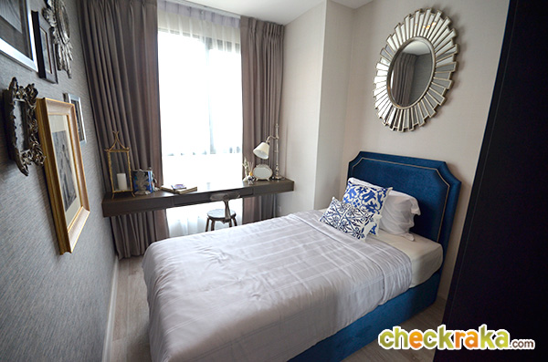 เพราะตำแหน่งห้อง 2 ห้องนอนเป็นห้องมุม ภายในห้องมาสเตอร์เบดรูมเลยมีบานประตูและหน้าต่างกระจกล้อมรอบห้อง (Again, as it is the corner room, so there are several windows and doors)