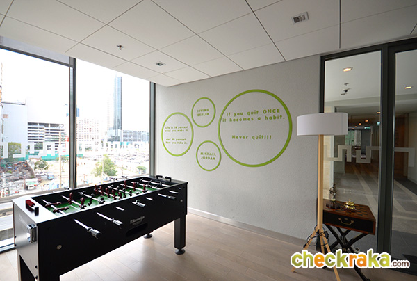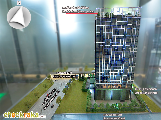 Location - It is widely believed by many that the intersection of Rama 9 Road-Ratchadapisek Road would become a new CBD (Central Business District) of Bangkok as explained above. In addition, this area comprises such a shopping and recreational place as Central Rama 9 (which is in the walking distance of approximately 220 meters) and one MRT station (which is in easy walking distance). Therefore, in terms of location, this is a good strategic location, except that the project is situated too close to the intersection and hence traffic jam at this intersection in front of the condominium is unavoidable. Nevertheless, expressways behind the condominium could help ease this problem as there are entrances and exits at these expressways which one can drive to or from other major areas such as Rama 4, Ploenchit, Chaengwattana and Bangna-Daokanong.
