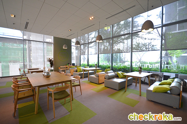 Common Area and Project Building - In general, the building is eye-catching with strip design which looks similar to some other previous projects of Ananda. The car-parking space is planted with climbers for coverage and beauty in ecological style. The common area of this project is quite admirable. On average, the common area here is composed of facilities which far exceed those of some other developers of comparable segments and price ranges. In particular, the facilities here comprise beautiful garden, swimming pool, library, recreational room and laundry room. Those who do not to like staying at all times in their own rooms should be happy with this wide range of facilities. In addition, life of residents here can be easier and more convenient with "True Coffee" shop and "Max Value Tanjai" supermarket downstairs. The ratio of the number of units and the number of car-parking slots is 42% while that of the number of units and the number of elevators is 234:1, both of these can be considered relatively dense in our opinion. In the surrounding area of the condominium, there are (or there will be) some constructions of high-rise buildings. Consequently, those who are looking for high-floor rooms with good panoramic view should carefully select the right units and we encourage you to take a visit and have the real sight of the panoramic view of each unit before making a decision to buy.
