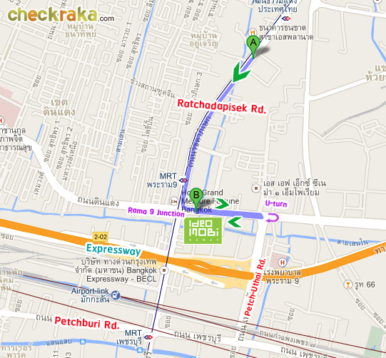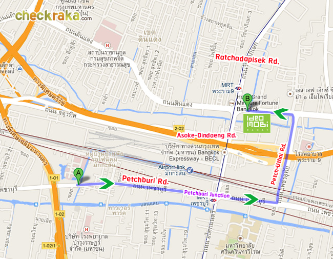 ลองมาดูภาพด้านล่างประกอบตัวอย่างการเดินทางหากมาจากถนนเพชรบุรี กันนะคะ