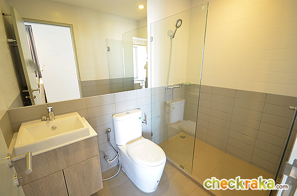 พื้นห้องน้ำลดระดับจากพื้นห้องรับแขก (The bathroom floor is slightly lower than that of the living area)