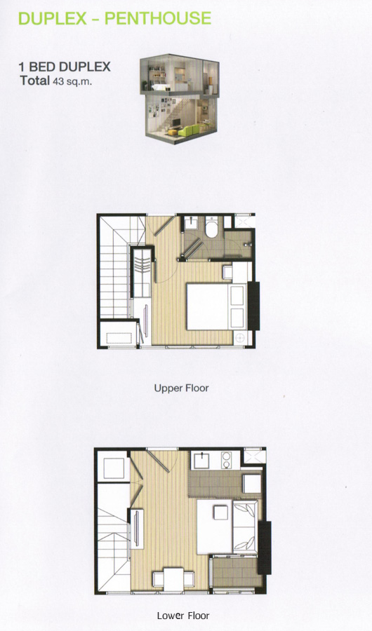จองและทำสัญญา 50,000 บาท - ห้องแบบ Duplex 1 ห้องนอน ขนาดพื้นที่ 42.0 ตร.ม. ราคา 6,414,000-8,738,000 บาท