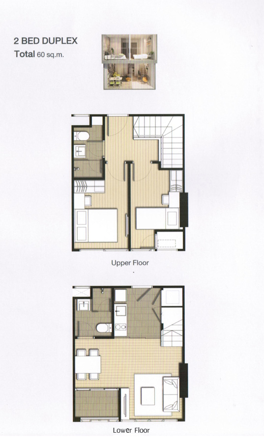 - Two-bedroom duplex unit, having the size of 60 sq.m. - Baht 8,738,000-9,250,000. The amount required for booking and contract signing will be Baht 50,000.