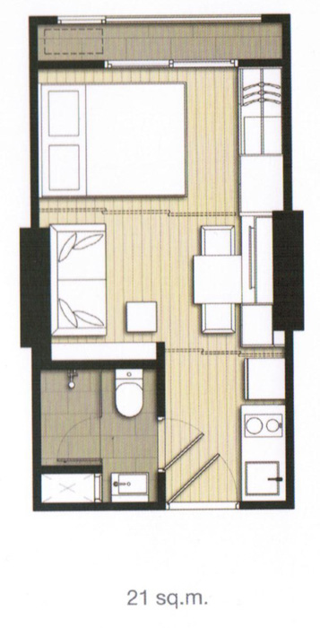 (3 passenger elevators and 1 freight elevator) - ห้องชุดมี 5 ขนาดหลักๆ คือ สตูดิโอขนาด 21 ตร.ม. 1 ห้องนอนขนาด 30 ตร.ม. 2 ห้องนอนขนาดตั้งแต่ 43-56 ตร.ม. Duplex 1 ห้องนอนขนาด 43 ตร.ม. และ Duplex 2 ห้องนอนขนาด 60 ตร.ม.