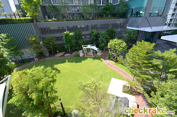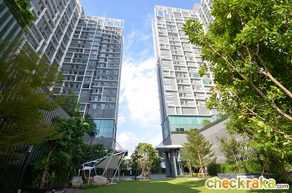 ส่วนกลางและตัวโครงการ - โครงการมี 2 อาคาร (A และ B) โดยมีอาคาร A เยื้องใกล้ไปทาง BTS สถานีอ่อนนุชมากกว่าอาคาร B แต่ละอาคารออกแบบเป็นรูปตัว L (2 L มาต่อกันเหมือนตัว U แหว่งตรงกลาง) และเว้นตรงกลางไว้เป็นสวนและทางเดินส่วนกลาง และ Drop Off Area ในส่วนท้ายๆ โครงการสำหรับรถที่จะมาส่งคนตรง Lobby ทั้งนี้ ส่วนกลางทั้งหมดที่อยู่ในแต่ละอาคารบนชั้น 4-5 เช่น สระว่ายน้ำ ห้องสมุด ห้องเกมส์รูม ห้องฟิตเนส ห้องซักรีด ทั้งหมดนี้ ใช้แยกกันแต่ละอาคารชัดเจนอาคารใครอาคารมัน ซึ่งโดยรวมแล้วถือว่าใหญ่และดูดีทีเดียว และก็น่าจะเพียงพอรองรับลูกบ้านในแต่ละอาคารได้ และการมีร้านกาแฟ True Coffee (อาคาร B) และ Max Value Tanjai (อาคาร A) ด้านล่างก็ทําให้การใช้ชีวิตในคอนโดโครงการนี้ง่าย และสะดวกขึ้นไปอีก สำหรับสัดส่วนที่จอดรถคือ 40% สำหรับอาคาร A และ 38% สำหรับอาคาร B ซึ่งเรามองว่าหนาแน่นไปนิด แต่เข้าใจว่าโครงการนี้ก็มีผู้เช่าชาวต่างชาติที่ไม่ได้ใช้รถอยู่พอสมควร ดังนั้น จึงอาจจะชดเชยไปได้ในระดับหนึ่งไม่หนาแน่นมากนัก ในส่วนของอัตราส่วนการใช้ลิฟต์นั้น จะเป็นเท่ากับ 224 ยูนิตต่อ 1 ลิฟต์ในอาคาร A และ 245 ยูนิตต่อ 1 ลิฟต์ในอาคาร B ซึ่งถือว่าหนาแน่นทีเดียวในช่วงเร่งด่วน ในส่วนของรอบๆ โครงการนั้น เนื่องจากโครงการนี้สร้างเสร็จแล้ว ดังนั้น ใครที่สนใจก็สามารถเข้ามาดู และเลือกห้องจริง และวิวจริงของแต่ละห้องได้เลยที่โครงการ บางยูนิตอาจเป็นมุมอับเพราะมีอาคารสูงบัง และบางยูนิตก็เป็นมุมโล่งค่ะ