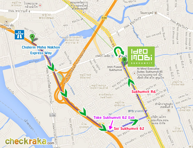 ขับมาจากทางด่วนเฉลิมมหานคร (ทางด่วนขั้นที่ 1 บางนา-ท่าเรือ) มุ่งหน้าบางนา ให้ใช้ทางออกสุขุมวิท 62 ค่ะ