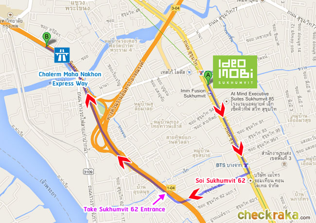 เส้นทางเข้าโครงการที่ 1 มาทางทางด่วนเฉลิมมหานคร (1st Inbound Route to Ideo Mobi Rama 9 - From Chalerm Maha Nakhon Express Way)