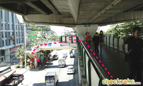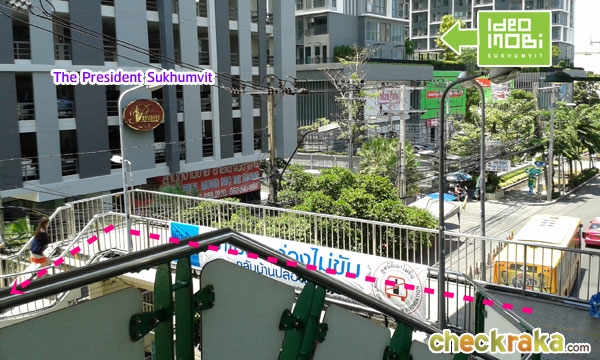 พอถึงทางเชื่อมกับสะพานลอยจะเห็นคอนโด The President สุขุมวิท และ Ideo Mobi สุขุมวิท อยู่ทางซ้ายมือ