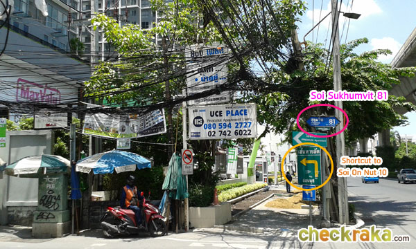(Walking further, we will reach the mouth of Sukhumvit 81 which can lead us to On-Nut 10)